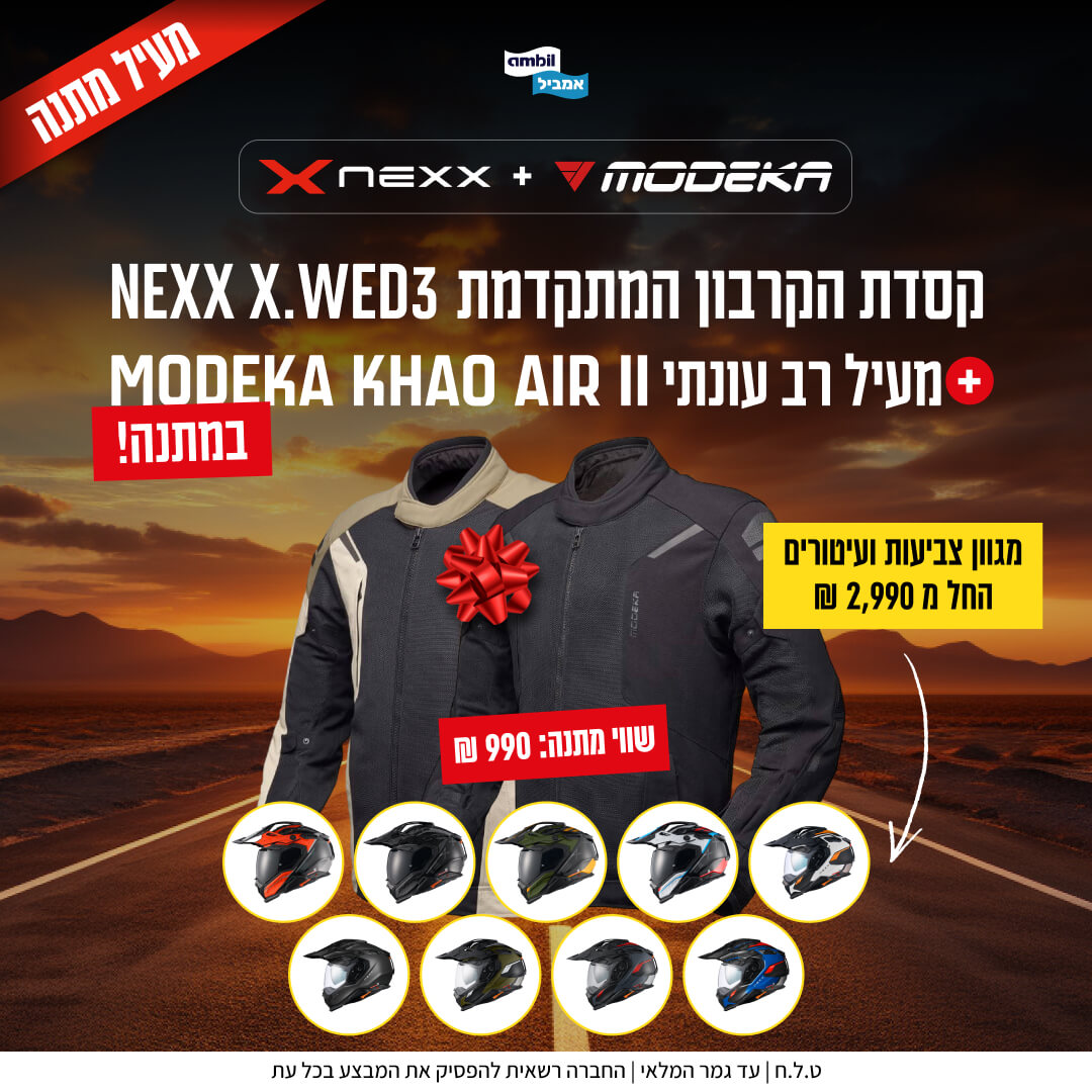 דף הבית » באנדלים » באנדל: קונים קסדת קרבון NEXX X.WED3 ומקבלים מעיר רב עונתי MODEKA KHAO AIR II בחינם!